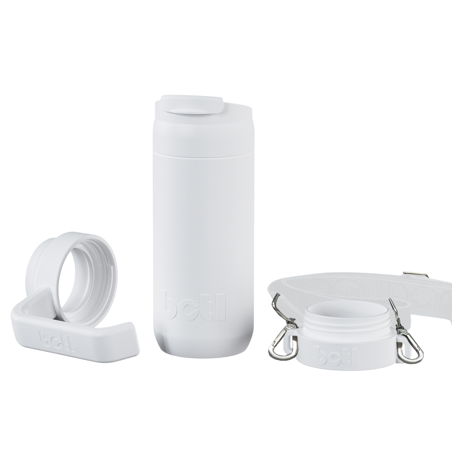 Home » Shop » 400ml Brew Flask – Reusable insulated leakproof cup with handle and carry strap – White – BOTL